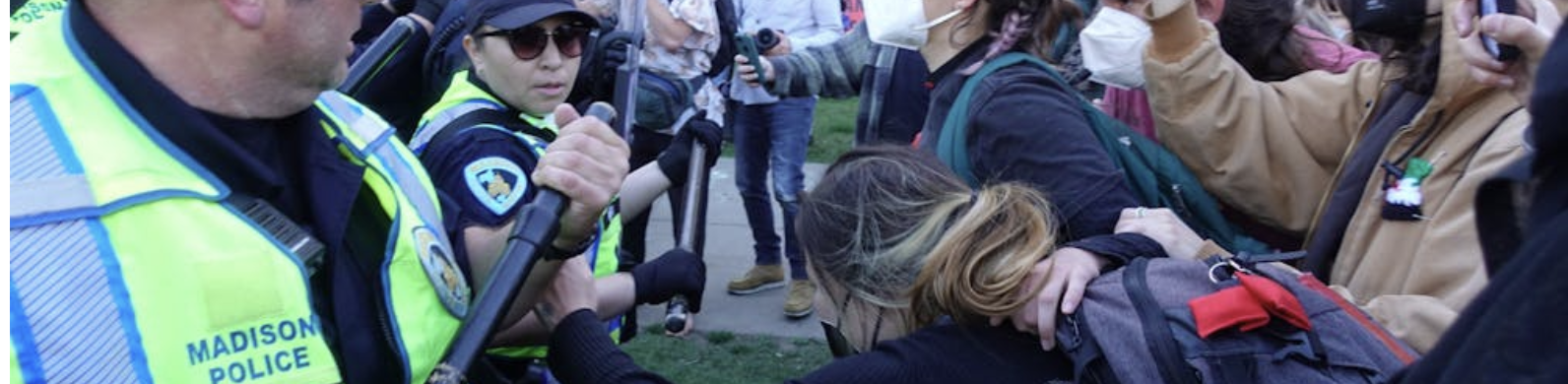 When the Madison Police Department, in coordination with campus police, were dismantling the illegal tent encampment, Brown allegedly assaulted a police officer, pulling her to the ground and attempting to take her wooden baton.